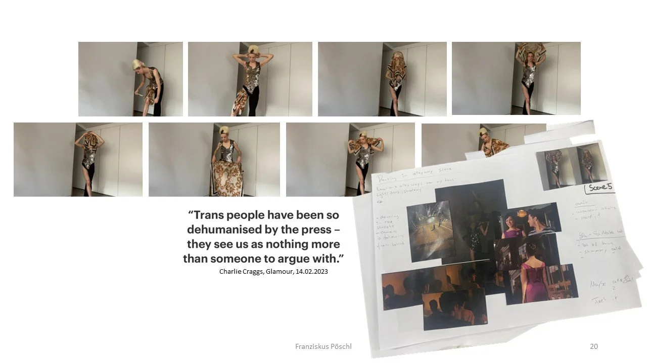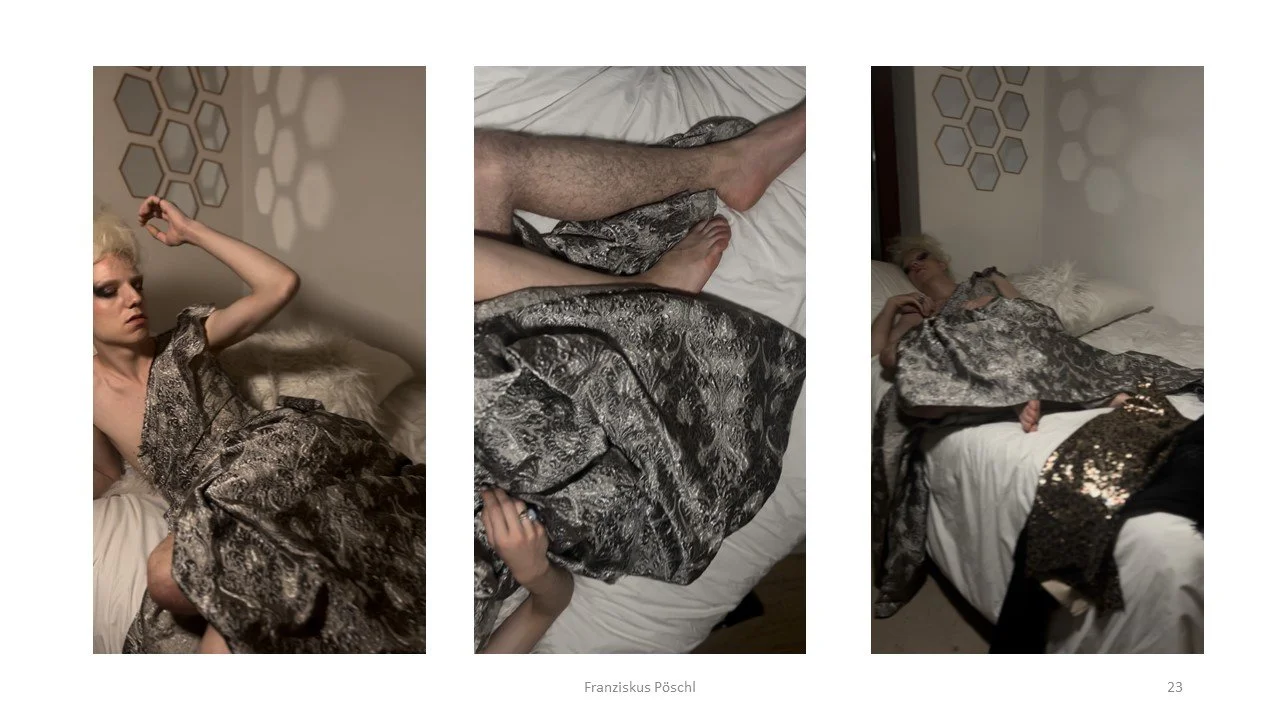My fashion is a self-portrait, through it I create a world to prosper in. As this actual world has left me and so many like me feeling alienated. As queer people, especially trans and gender non-conforming people, we create ourselves. We unlearn what society told us and we eventually find our authentic identities. Every breath we take is a political act, to which we had no choice. Every so often it feels like no one ever wanted us here, but we are here. We are flourishing, asking questions, and we are celebrating our lives as we slowly let go of the shame that is so deeply engraved in us. For so long I did not see a future for myself, at least not a desirable one. Sometimes I still do not. But sometimes when I am able to express with fashion what I can not with words, I do see it, a desirable future for myself and for my community